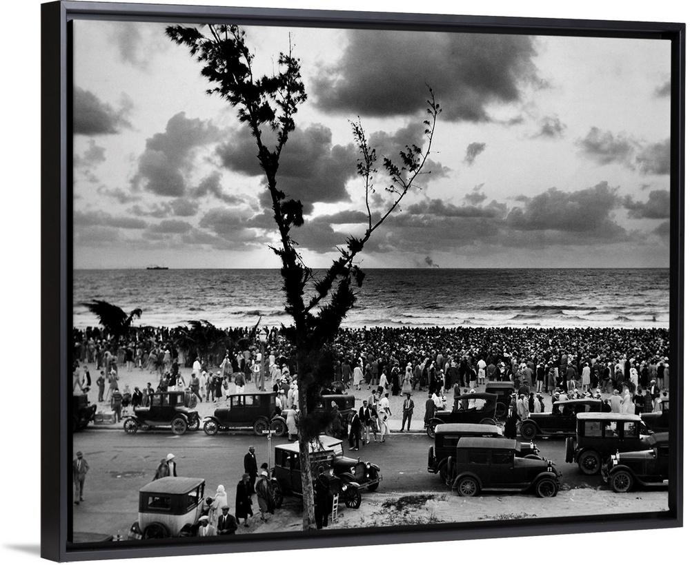 <p>People gather at sunrise at Miami Beach, Florida, 1927. Photograph likely taken on 17 April 1927, when thousands of people assembled on Easter Sunday to pray for recovery from the Great Miami Hurricane that hit the city in September 1926.</p>