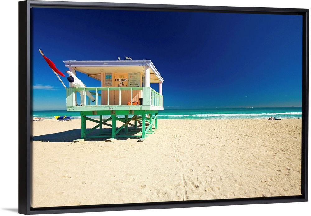 <p>United States, USA, Florida, Miami, Miami Beach, lifeguard beach hut</p>