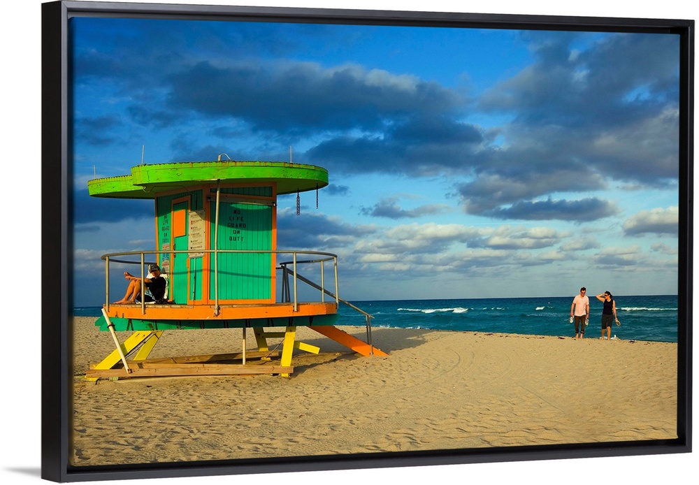 <p>United States, USA, Florida, Miami, Miami Beach, lifeguard beach hut</p>