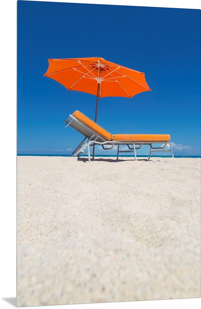 <p>Florida, Miami, South Beach, empty beach chair.</p>
