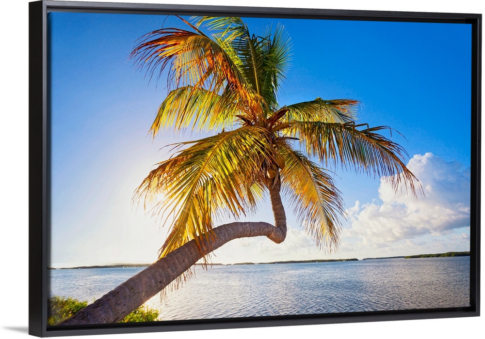 <p>Florida, South Florida, The Keys, Islamorada, leaning palm tree.</p>