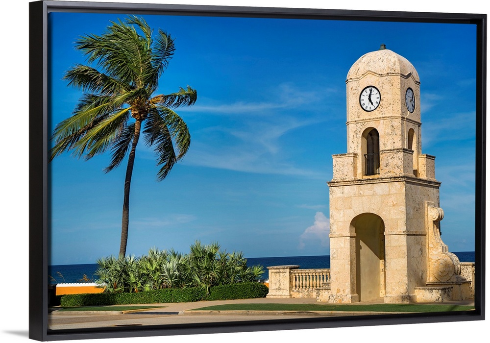 <p>Florida, South Florida, The Palm Beaches, Palm Beach, clock tower by the beach..</p>