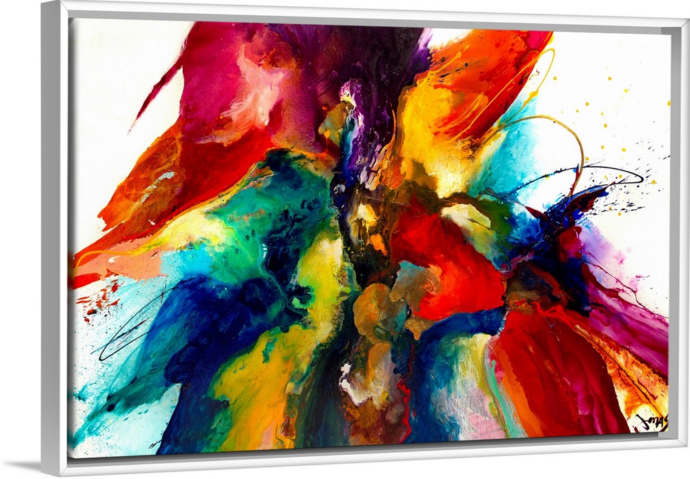 <p>Intense explosion of abstract paint splatters and bleeding colors. This contemporary art work has a strong centered composition.</p>