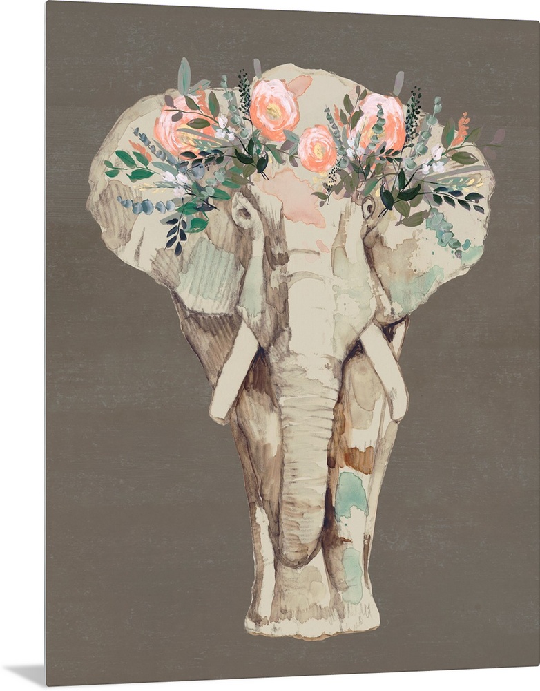 Art Decorative Art Florals Jennifer Goldberger Grey Wall Art Painting Wildlife Elephant