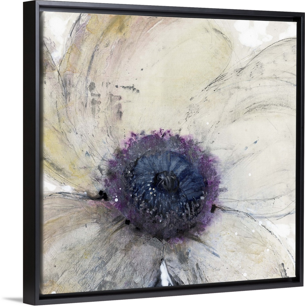 <p>A contemporary painting of a close-up view of a cream toned flower with a purple center.</p>
