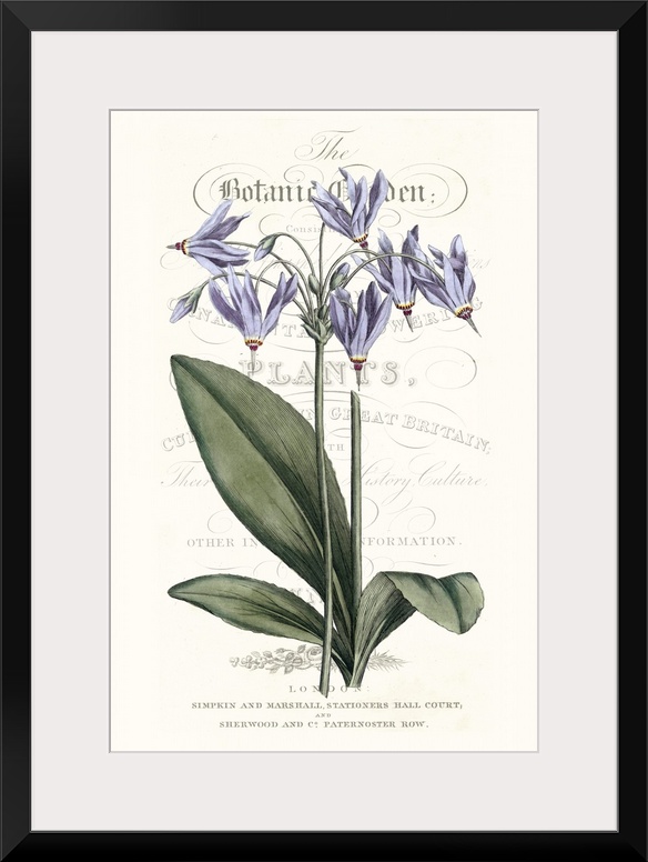 <p>This botanical illustration features a purple flower over decorative text on a neutral background.</p>