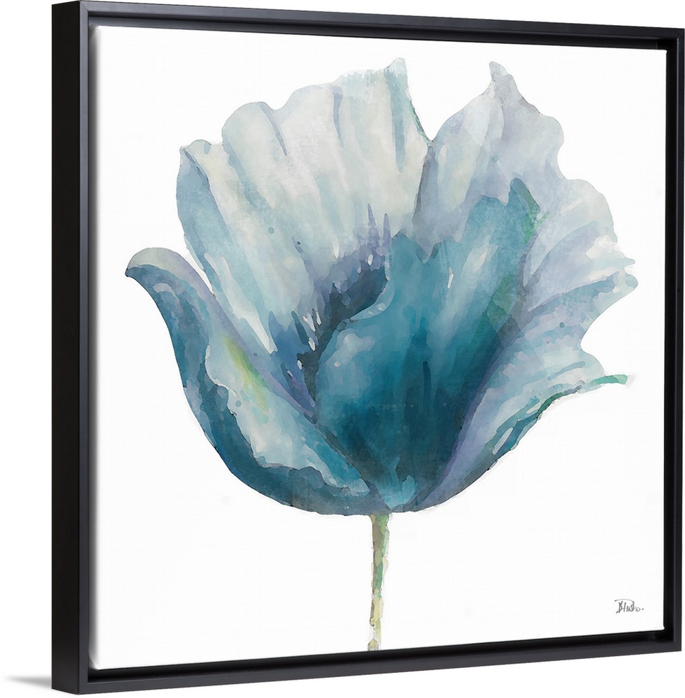<p>This botanical artwork is comprised of watercolor layers in various shades of blue.</p>