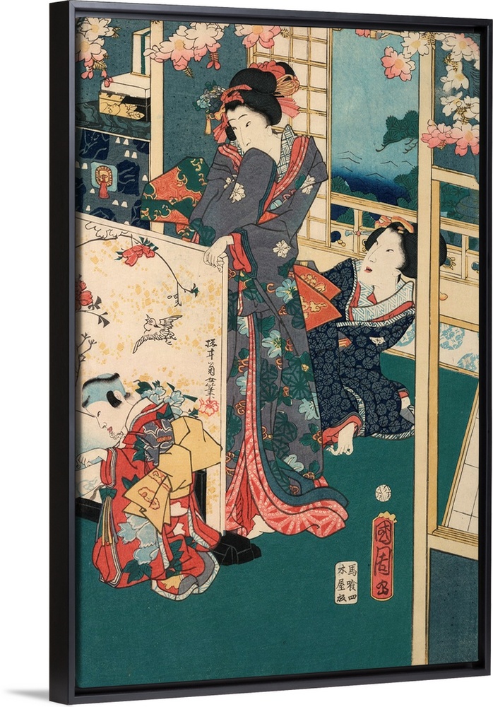 <p>Hanami no en. Panel of a vertical Oban Nishikie triptych. 1862. Woodcut, color.</p>