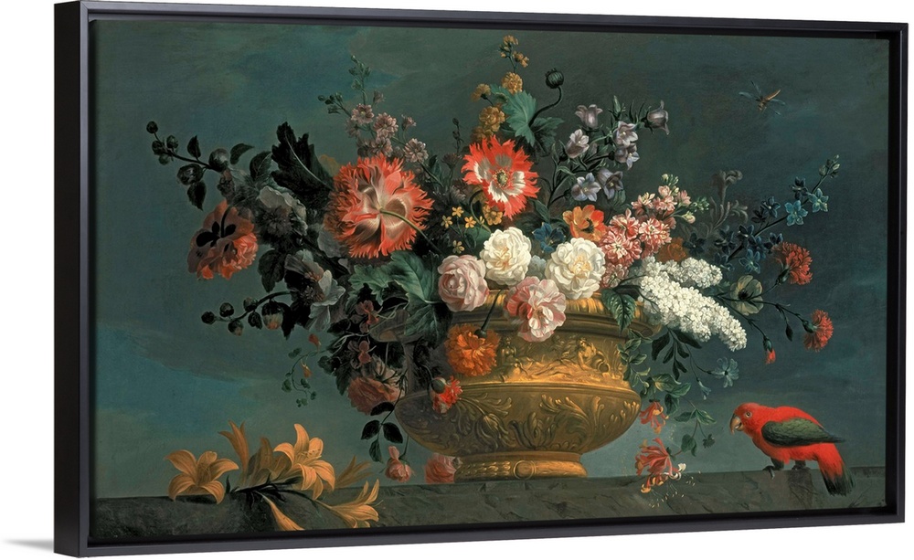 <p>BAL15003 Flower piece with parrot by Bogdani or Bogdany, Jakob (1660-1724); Roy Miles Fine Paintings; Hungarian</p>