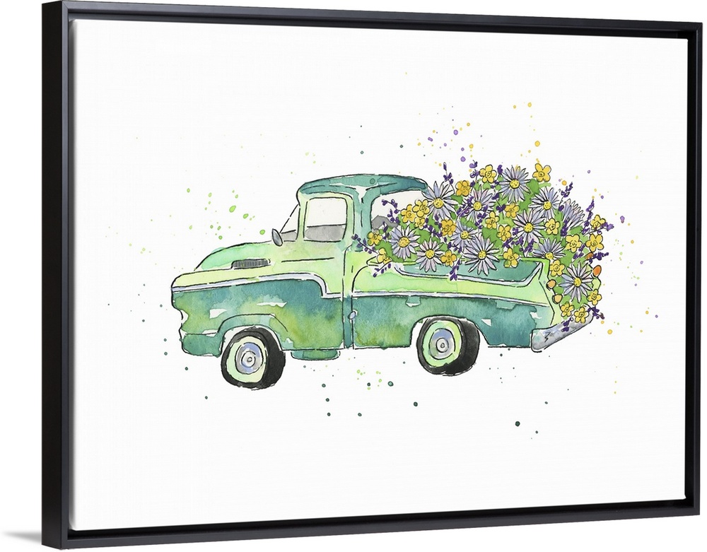 Art Decorative Art Florals Green Wall Art Painting Transportation Truck Watercolor
