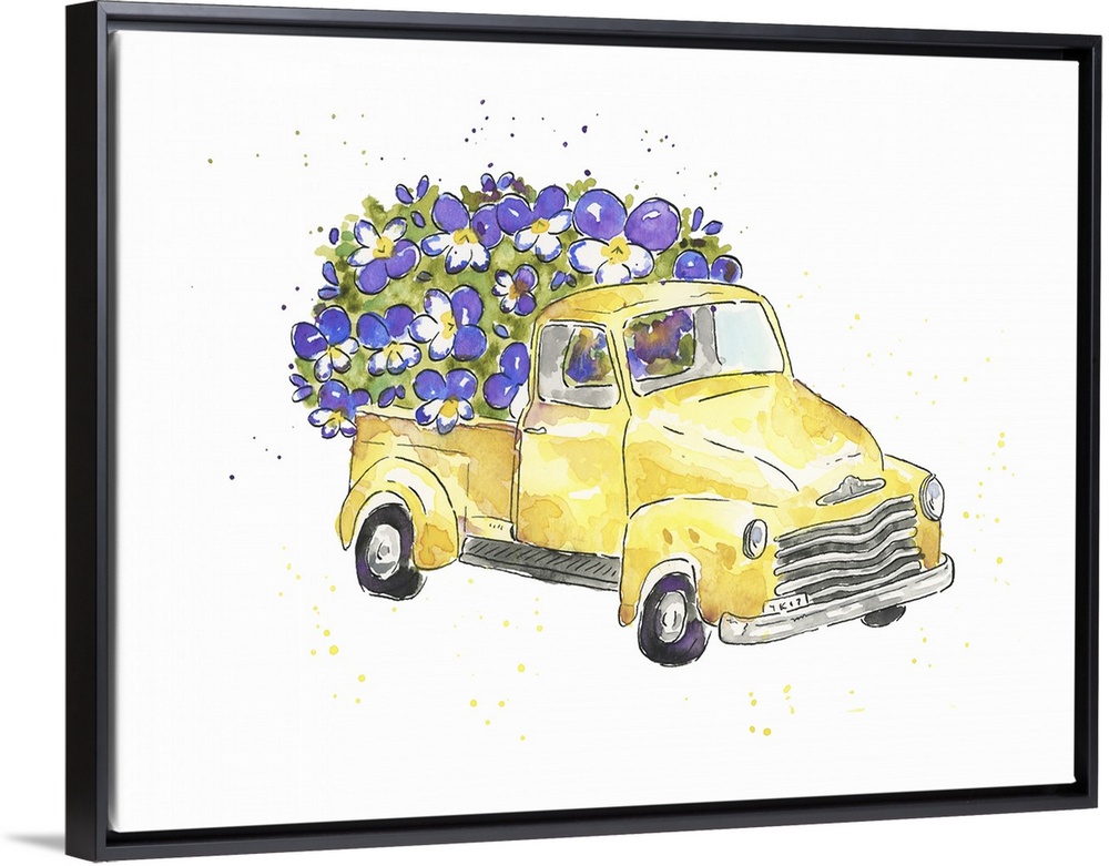 Art Decorative Art Florals Painting Transportation Truck Watercolor Yellow Wall Art