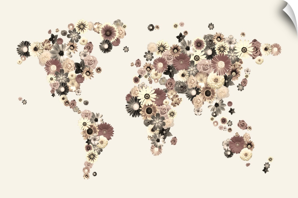 <p>Map of the World made from flowers. Some of the flowers used include roses, gerberas, daisies and dahlias.</p>