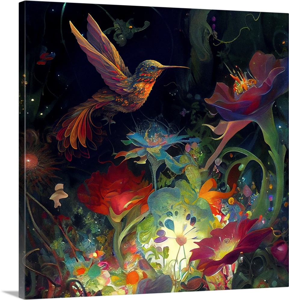 Art Fantasy Florals Graphic Art JK Stewart Wildlife Bird Hummingbird
