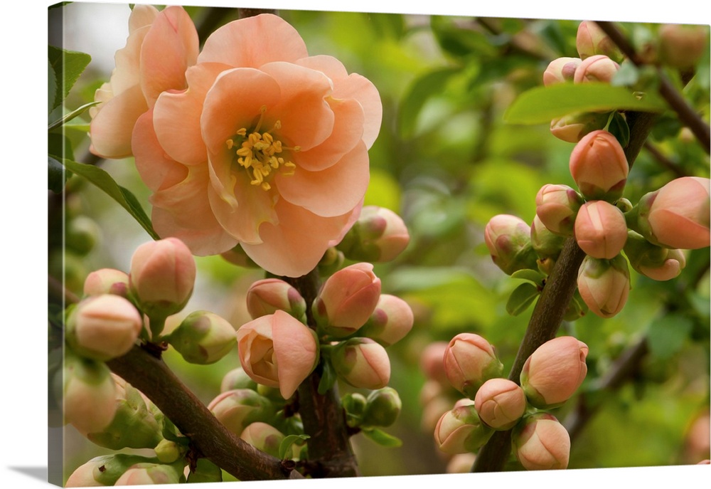 <p>Flowers, buds, and branches of Camellia reticulata, in springtime. New Hampshire.</p>