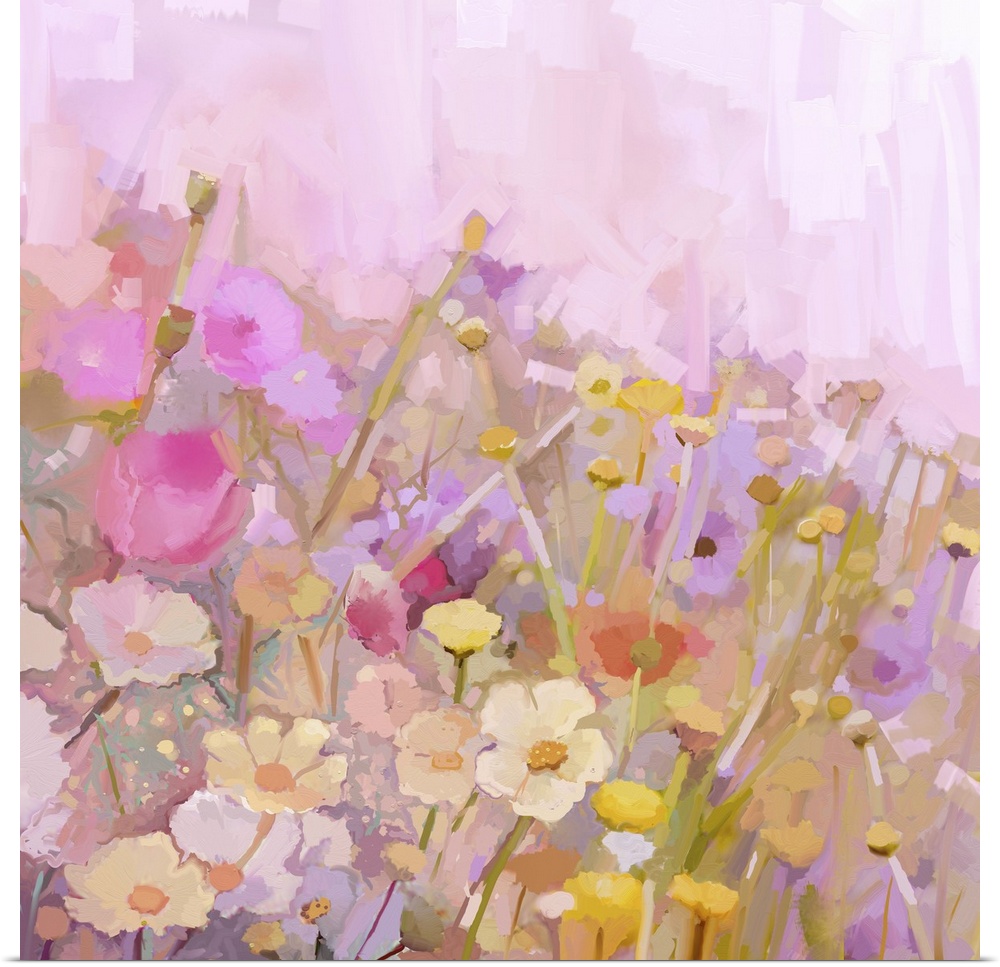 <p>Flower, originally an oil painting. Flowers field in soft color and blur style.</p>