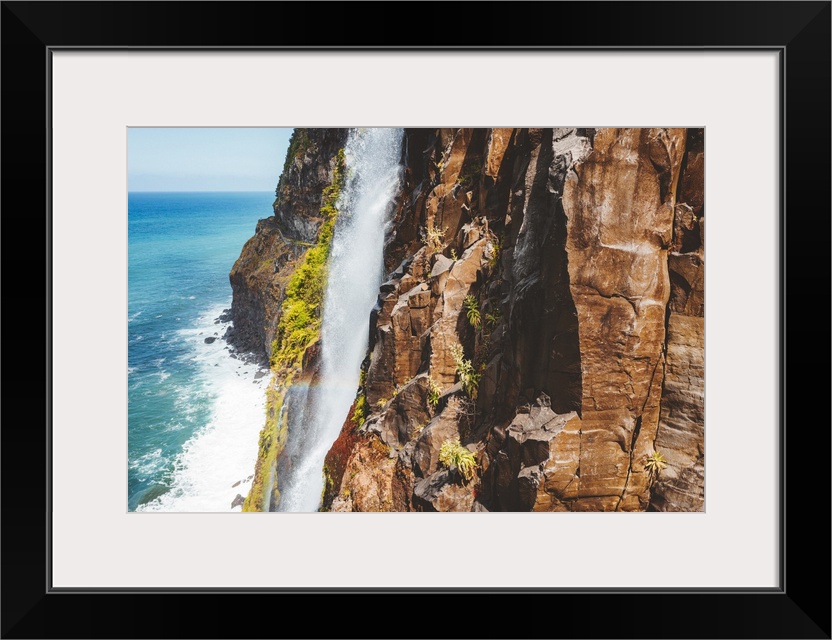 <p>Flowing water of Bridal Veil Fall jumping from rocks, Seixal, Madeira island, Portugal, Atlantic, Europe</p>
