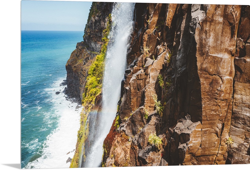 <p>Flowing water of Bridal Veil Fall jumping from rocks, Seixal, Madeira island, Portugal, Atlantic, Europe</p>