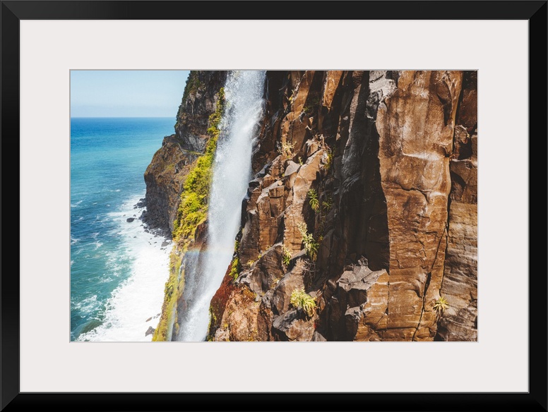 <p>Flowing water of Bridal Veil Fall jumping from rocks, Seixal, Madeira island, Portugal, Atlantic, Europe</p>