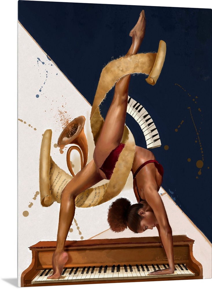 African-American Art Figurative Art Contemporary Art Curated Collections Pomegranate Noir Salaam Muhammad Music, Movies and TV Music Instruments Painting People Figurative Gymnastics
