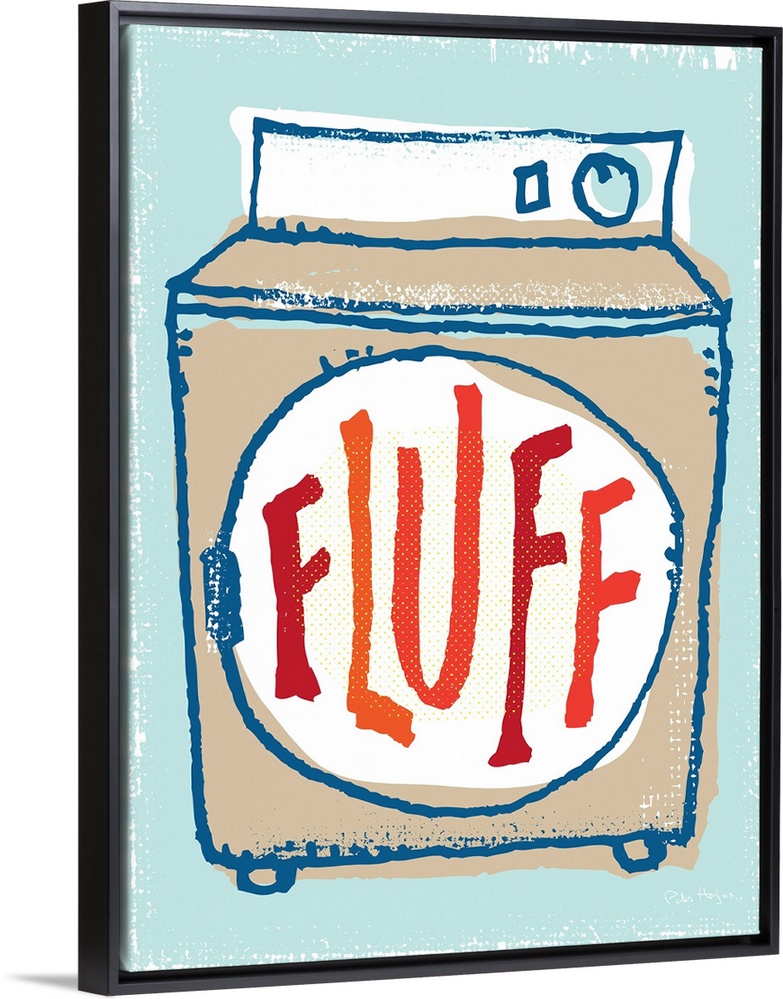 <p>Illustration of a laundry clothes dryer with the words Fluff on it.</p>