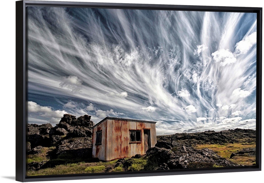 <p>A dramatic skyscape over a derelict shack in the Icelandic countryside.</p>