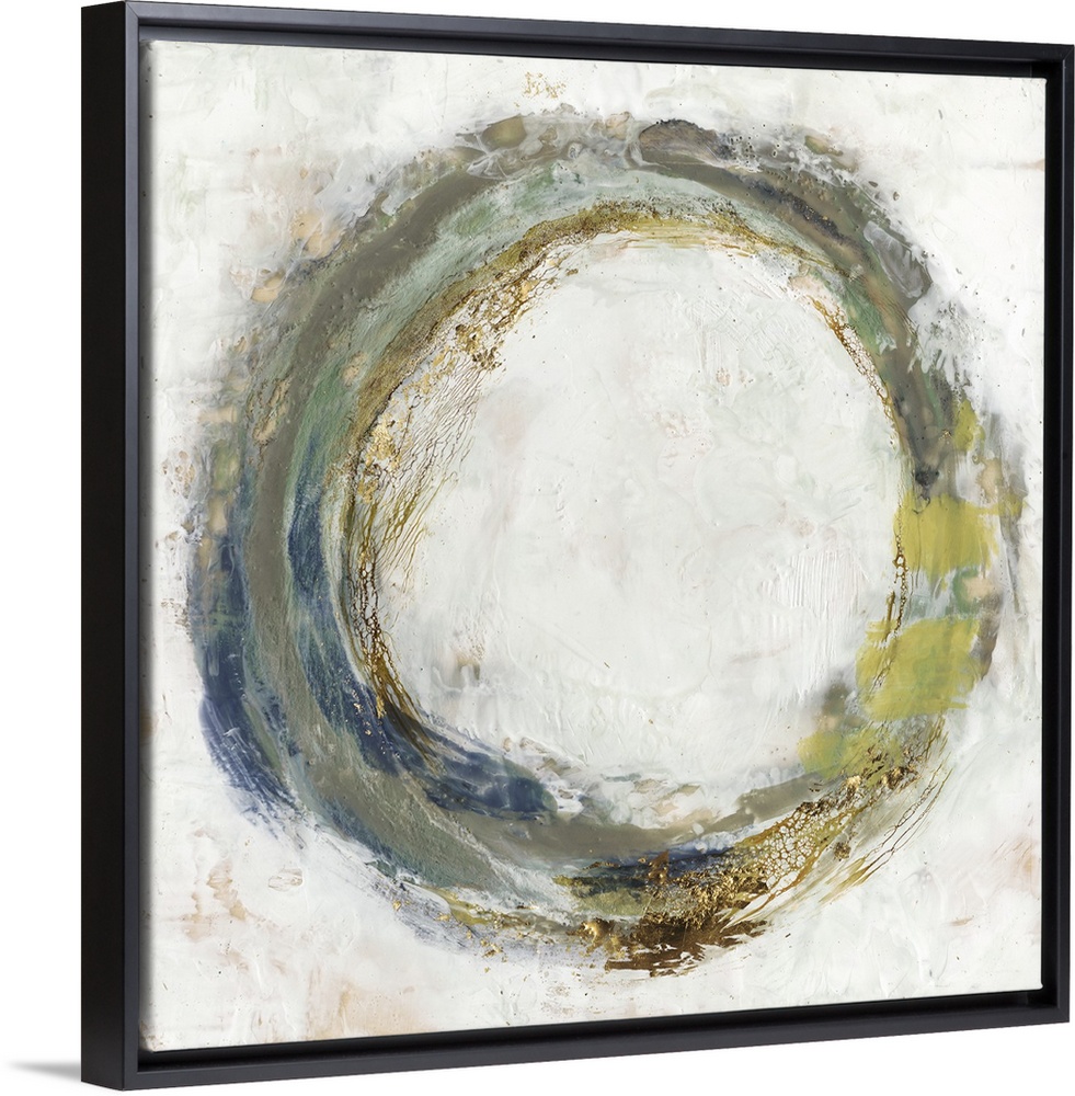 <p>Abstract artwork of a circular shape in green and blue, with a gold leaf effect.</p>