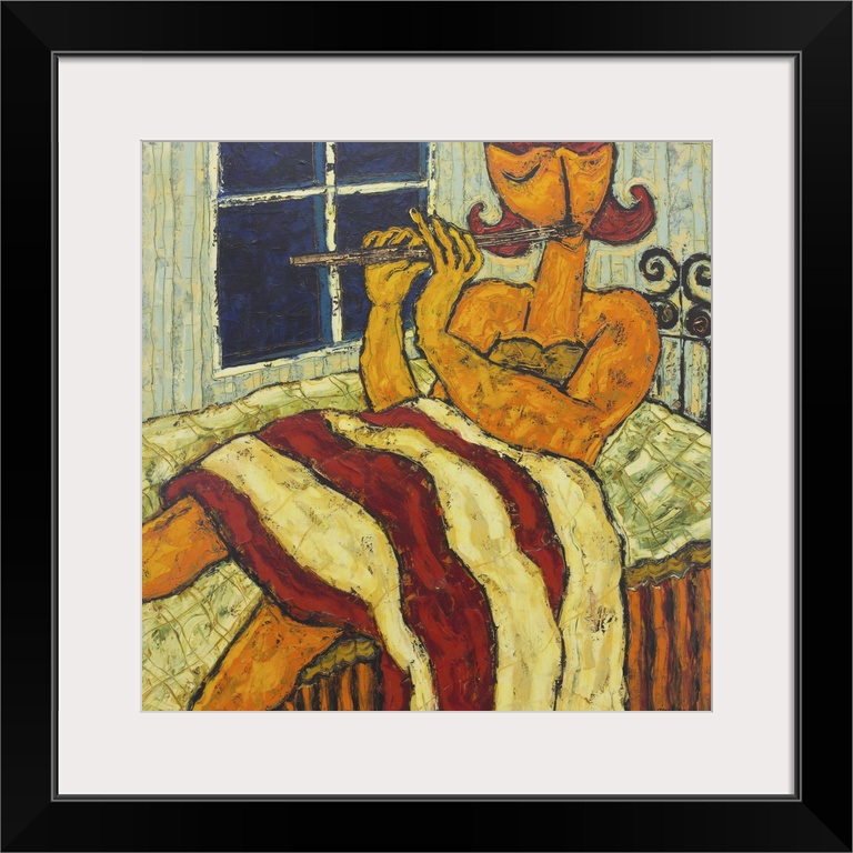 <p>The night sky peeks through a window into her bedroom. Oblivious to time, a woman coaxes an enchanting melody from her flute. Joel Mangundirjo depicts a girl whose best friend is the flute, which she plays morning, noon and night.</p>