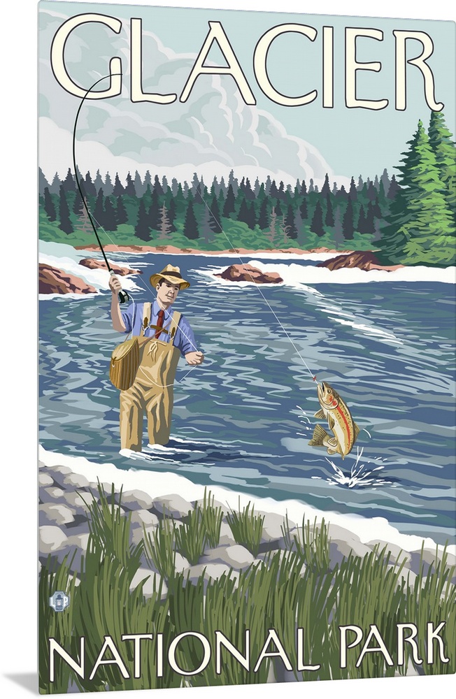 Art Lantern Press Montana Glacier National Park Fly Fishing Travel Posters Retro Travel Posters