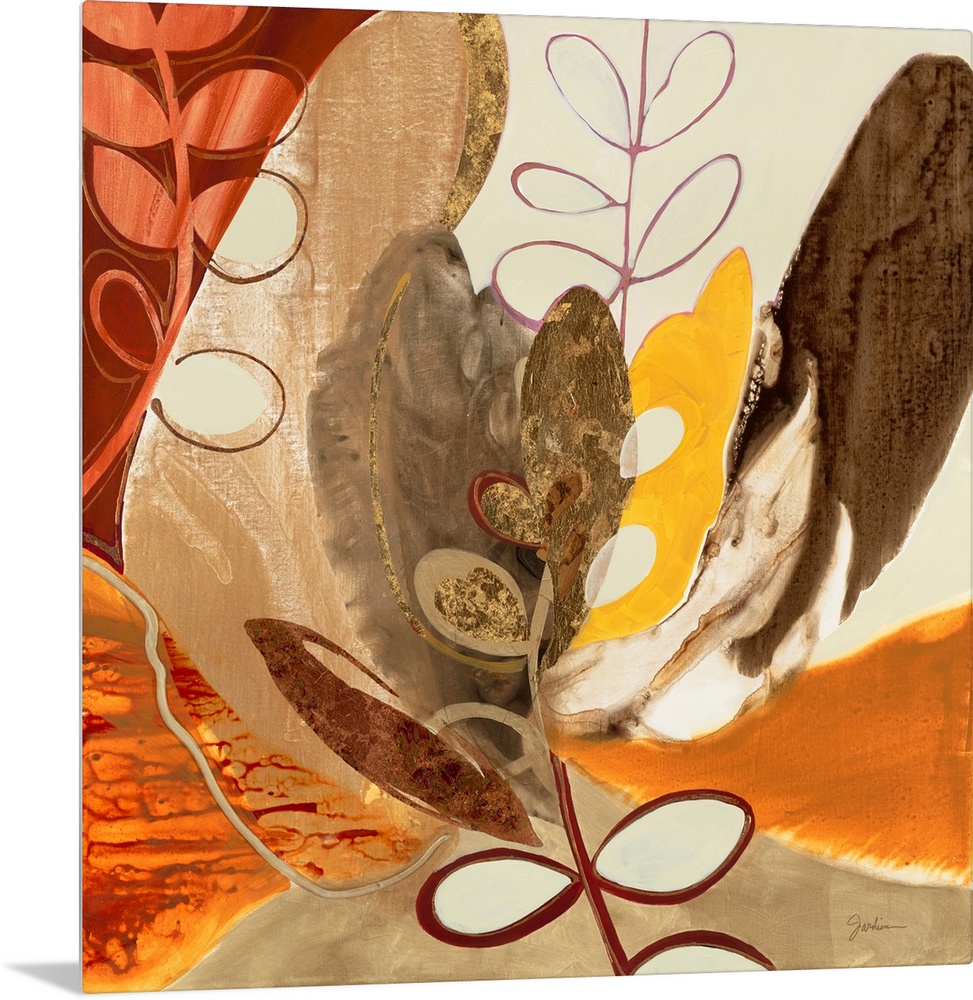 Abstract Abstract Florals Art Contemporary and Modern Mid-Century Modern Brown Wall Art Contemporary Art Plants and Flowers Florals Liz Jardine Painting