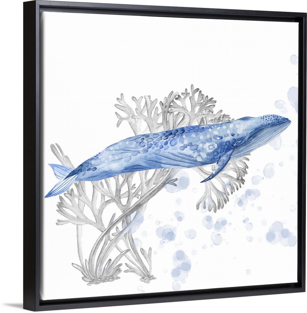 <p>A watercolor painting that features a serene whale swimming with flowing coral behind and soothing bubbles.</p>