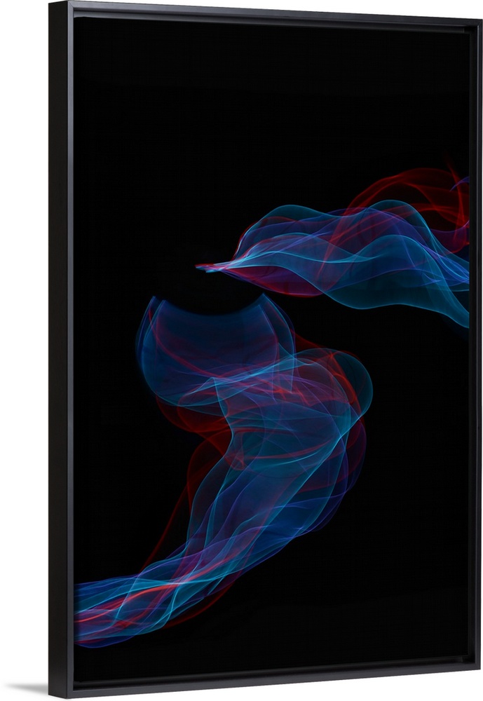 <p>Abstract image created by trailing blue and red lights, resembling wisps of smoke.</p>
