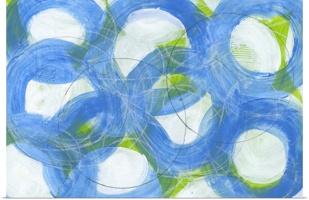 <p>Contemporary abstract artwork made of several large rings in blue tones.</p>