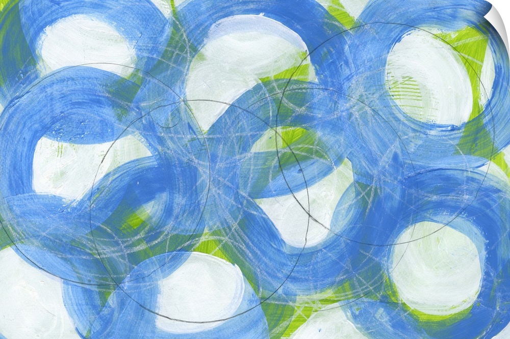 <p>Contemporary abstract artwork made of several large rings in blue tones.</p>