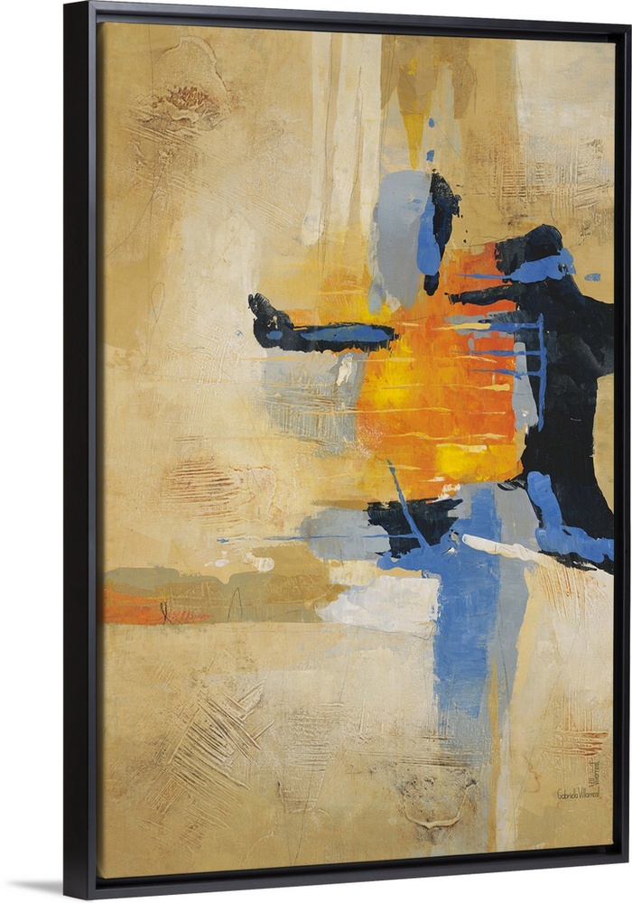 <p>Contemporary abstract artwork using warm and cool tones in a geometric rhythm.</p>