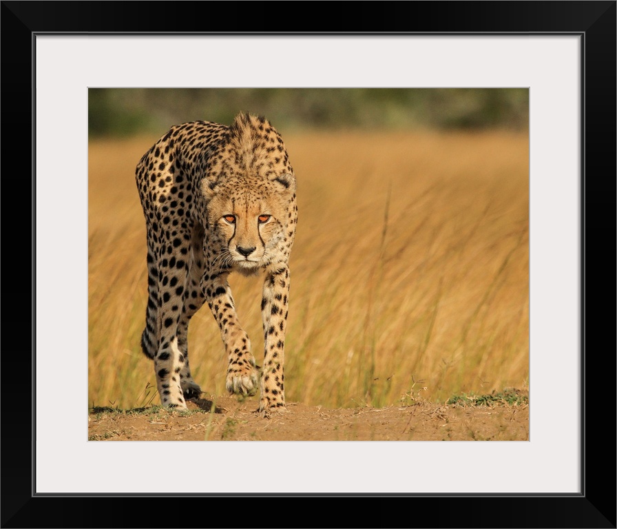 <p>A spotted cheetah stalking its next meal in the African savanna.</p>