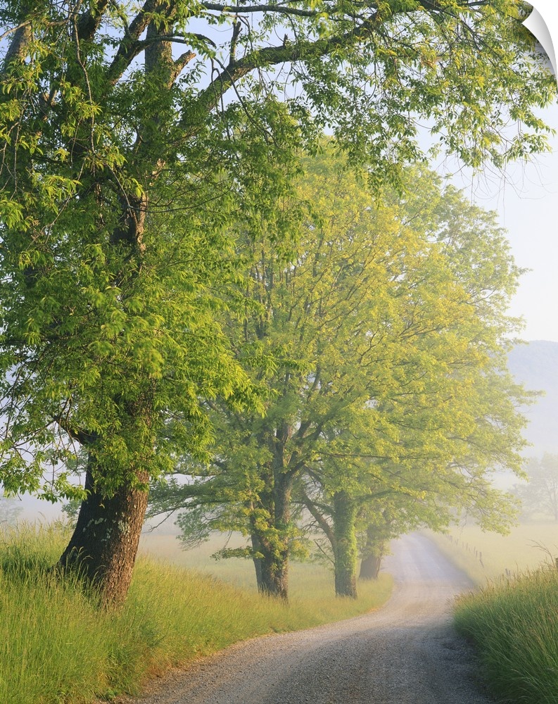 <p>Fog covered road, Cades Cove, Great Smoky Mountains National Park, Tennessee.</p>