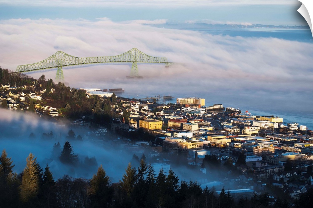 <p>Fog hovers over the Columbia River. Astoria, Oregon, United States of America.</p>