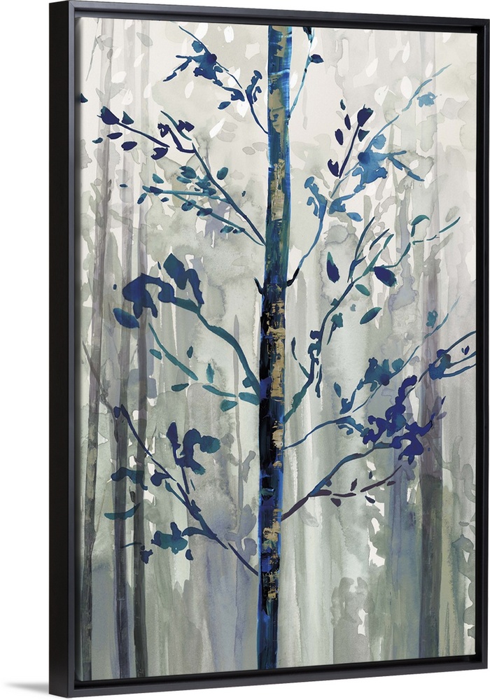 <p>Contemporary home decor artwork of a forest of a dark blue trees.</p>