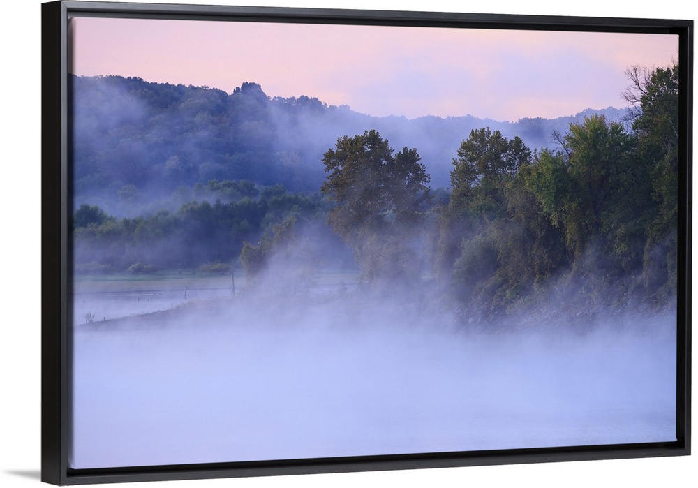 <p>Fog Over Truman Lake With Pastel Colors In The Sky</p>