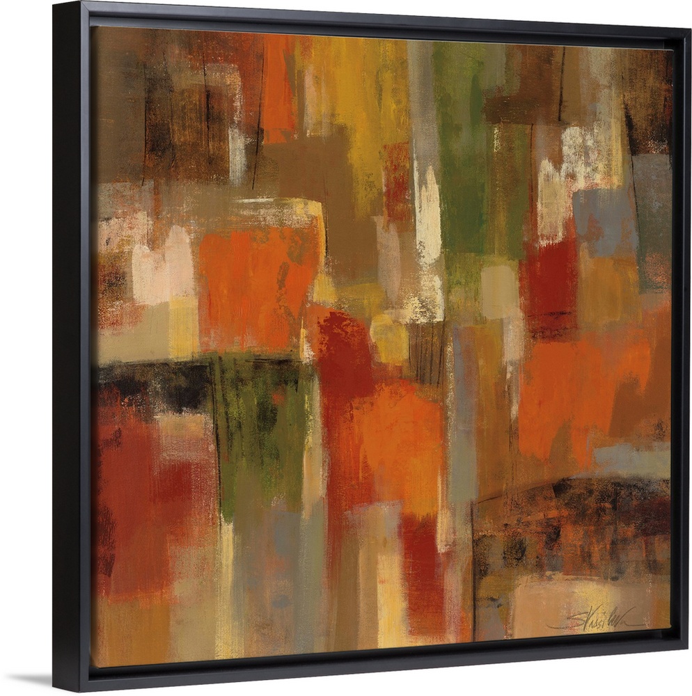 <p>Contemporary abstract painting of rectangular blocks of color in warm tones.</p>