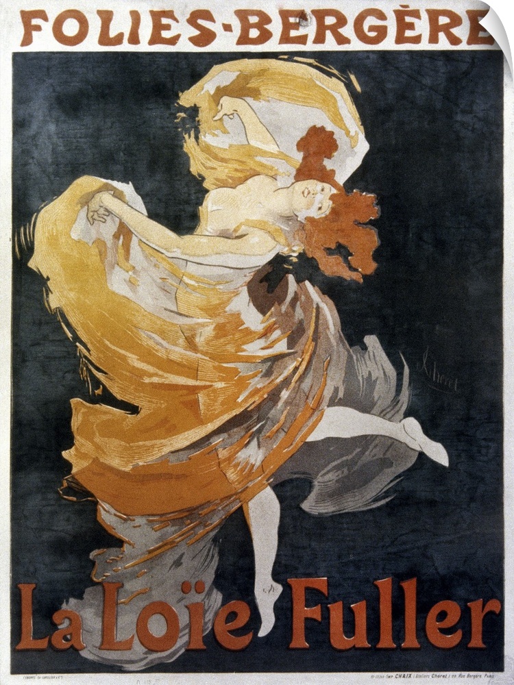 <p>American dancer Loie Fuller (1862-1928) on a French lithograph poster, 1893, by Jules Cheret for the Folies-Bergere, Paris.</p>