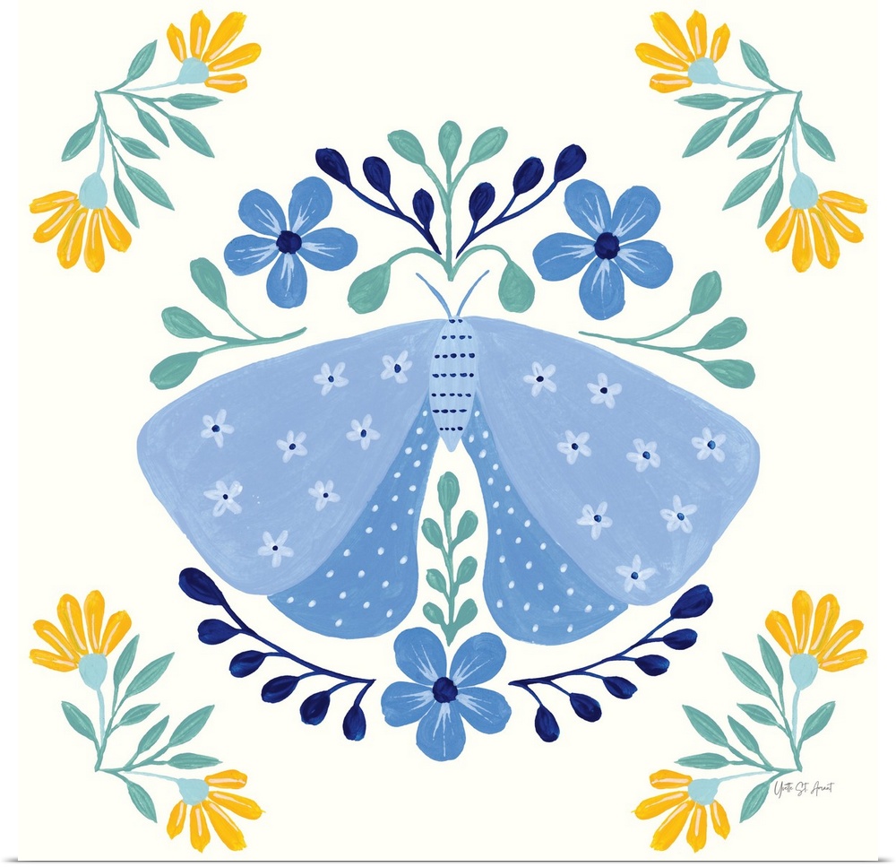 Art Blue Wall Art Decorative Art Painting Yvette St. Amant Wildlife Insect and Arachnid Butterfly