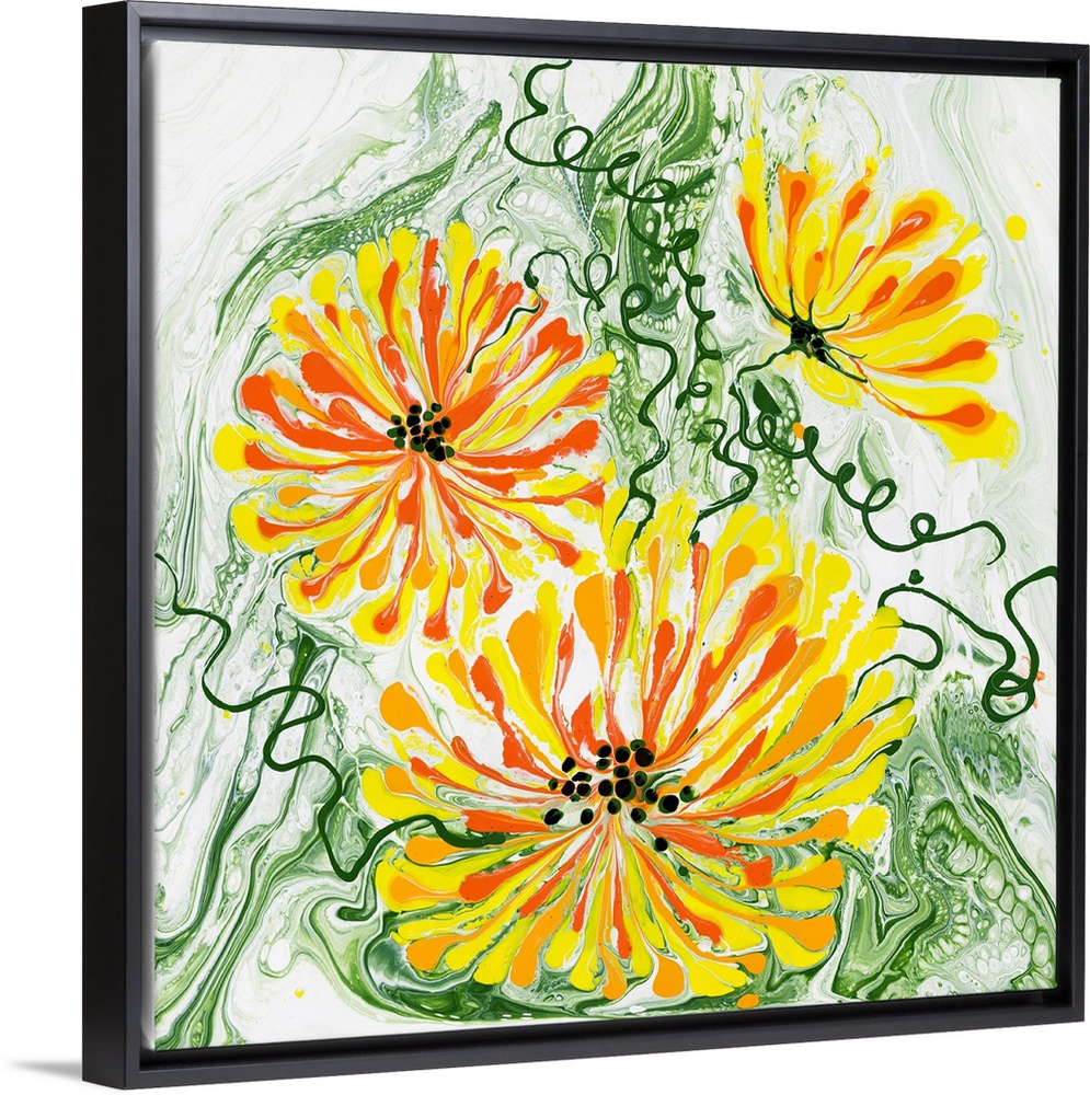 <p>Pour painting of a fresh meadow makes full use of the technique: there are flows of colorful petals, pours of curly grass and unique patterns of the layered paint at the background.</p>