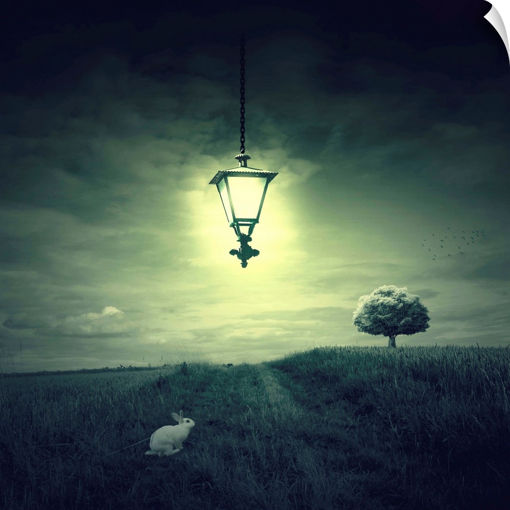 <p>Abstract photo montage with a white rabbit</p>
