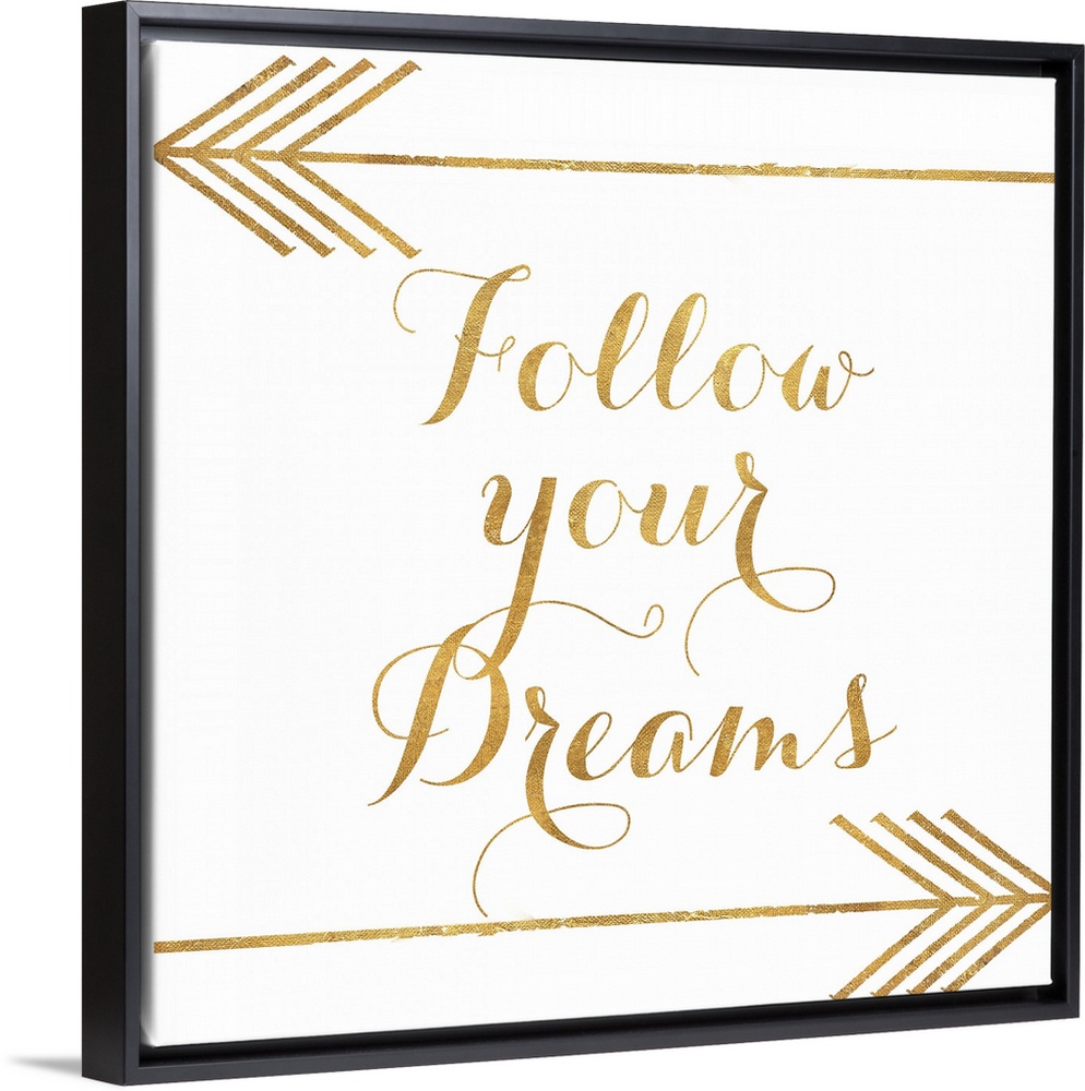 <p>"Follow Your Dreams" written in gold with two gold arrows.</p>