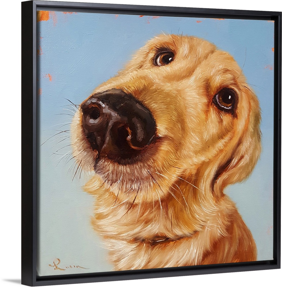 <p>A contemporary painting of a yellow labrador against a blue backdrop.</p>