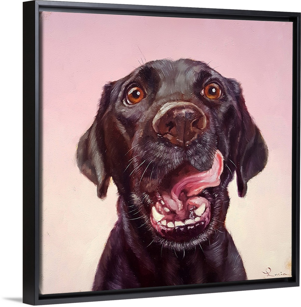 <p>A contemporary painting of a black labrador against a pink backdrop.</p>