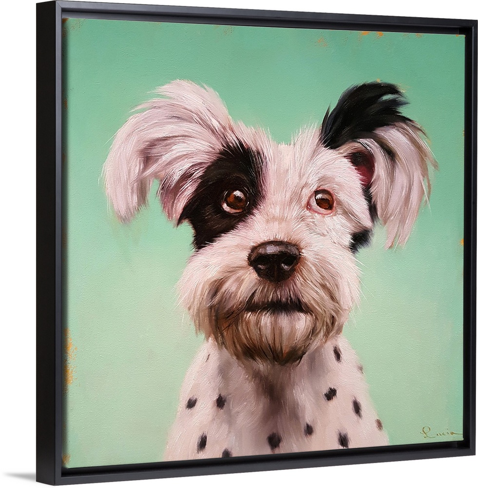<p>A contemporary painting of a terrier against a green backdrop.</p>