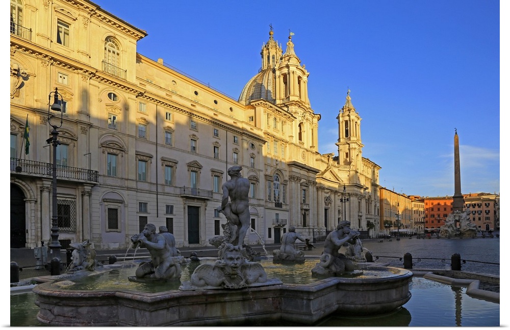 <p>Fontana del Nettuno and Fontana dei Quattro Fiumi in Piazza Navona, Rome, Lazio, Italy</p>