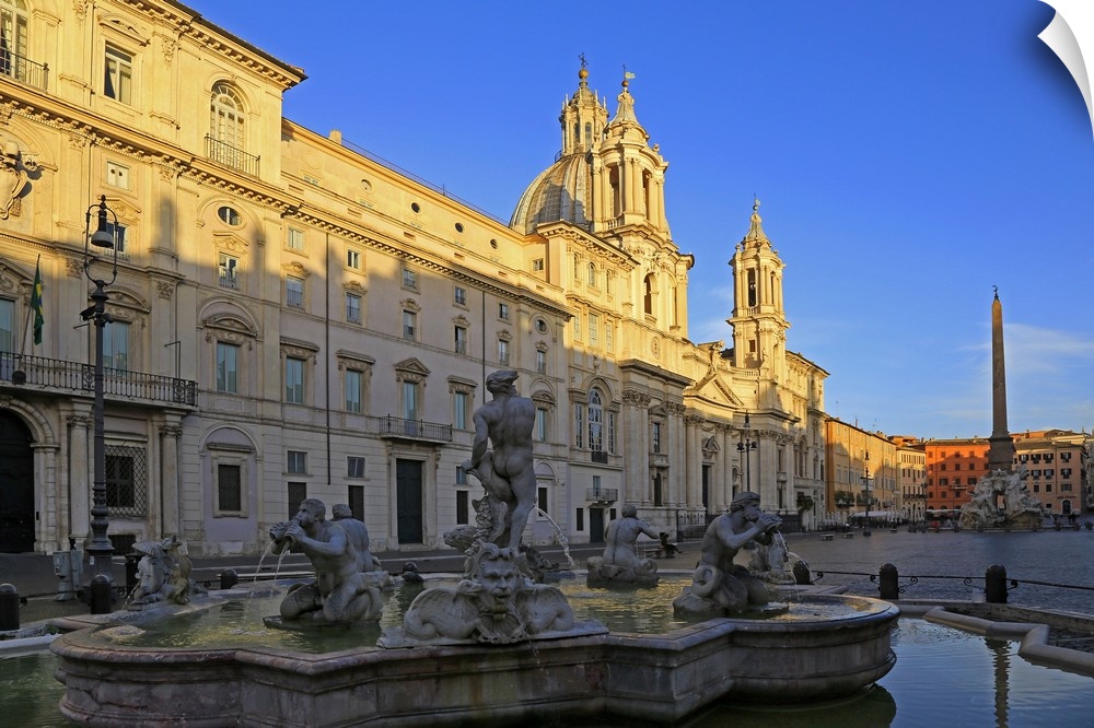 <p>Fontana del Nettuno and Fontana dei Quattro Fiumi in Piazza Navona, Rome, Lazio, Italy</p>